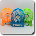 พัดลมจิ๋วเหมาะสำหรับพกพา ทำจากพลาสติกทนความร้อน มีถ่าน ชาร์จไฟได้